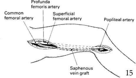 Learning target: To perform a femoro-popliteal/distal vein bypass (reversed saphenous vein) to infragenual arteries (popliteal artery P III, crural artery)